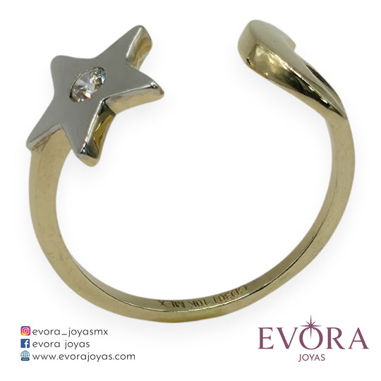 Anillo Estrella Luna 6 de Oro 10k