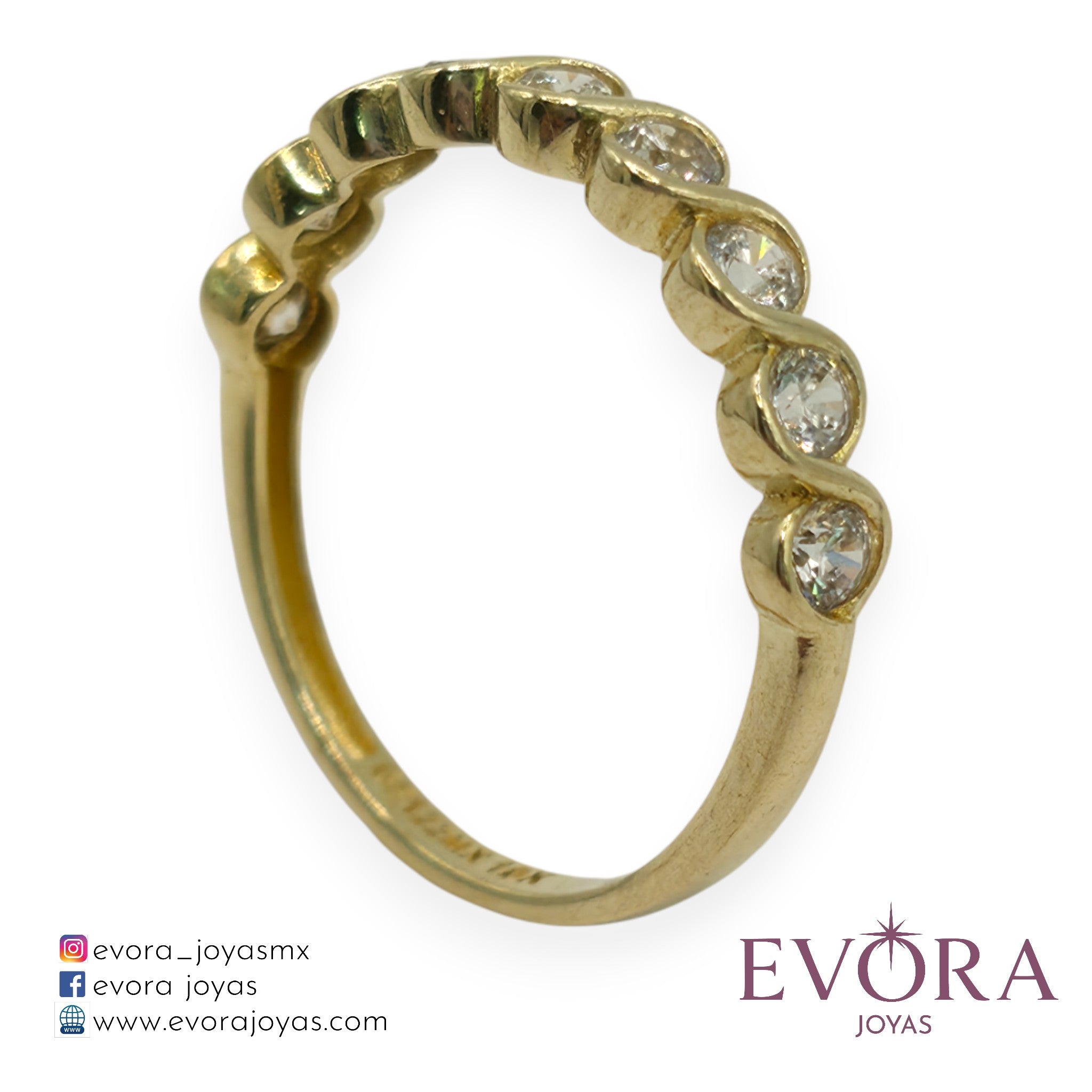 Luce este elegante anillo modelo 'Churumbela Zirconias 6', fabricada en oro Mexicano de 10k.