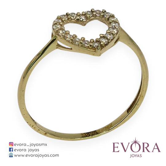 Anillo Corazon Zirconia Hueco de Oro 10k