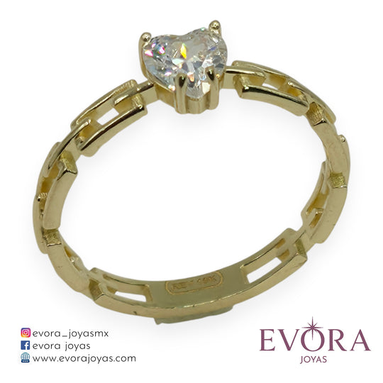 Anillo Corazon Zirconia Eslabones de Oro 10k