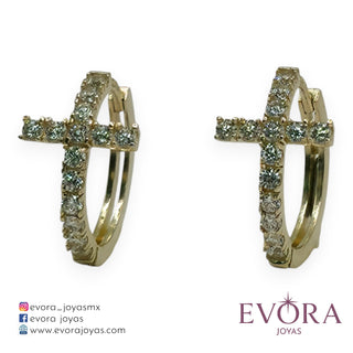 Aretes Huggies Zirconias Cruz de Oro 10k