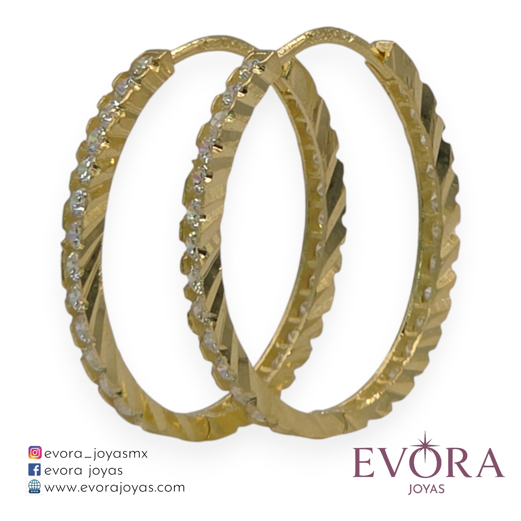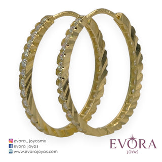 Aretes modelo 'Huggies de Trenza Ovalados con Zirconia', fabricada en oro Mexicano de 10k. Un diseño Huggies diseñada para mujer. Mide 2 cm.