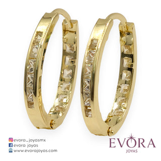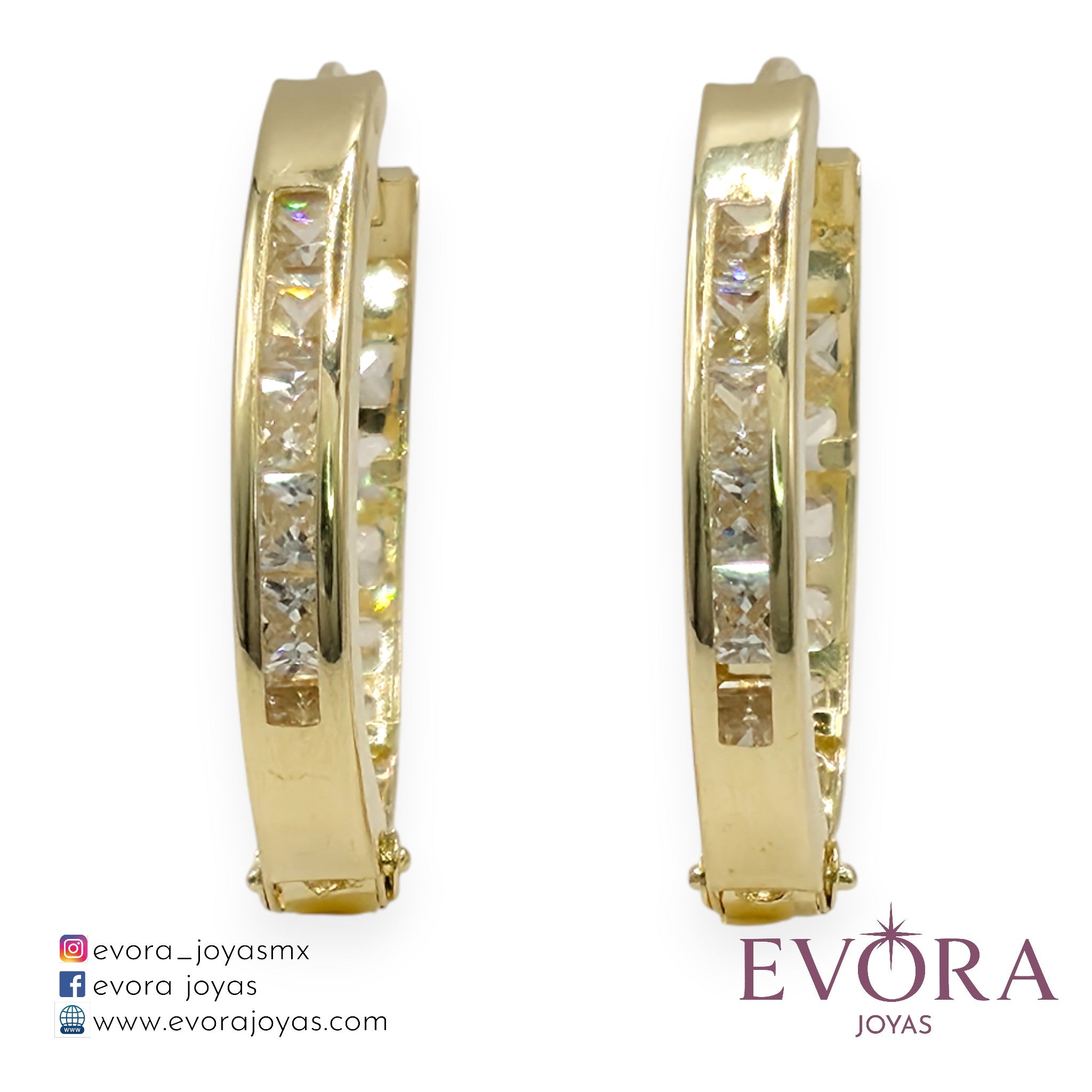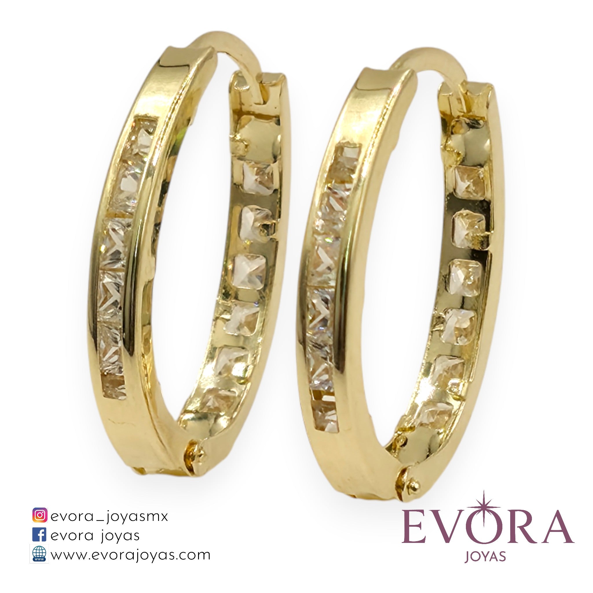 Aretes modelo 'Huggies Ovalados con Zirconia', fabricada en oro Mexicano de 10k. Un diseño Huggies diseñada para mujer. Mide 2 cm.