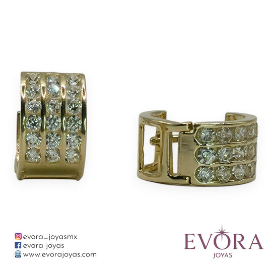 Aretes Huggies Zirconias Triple Tira de Oro 10k
