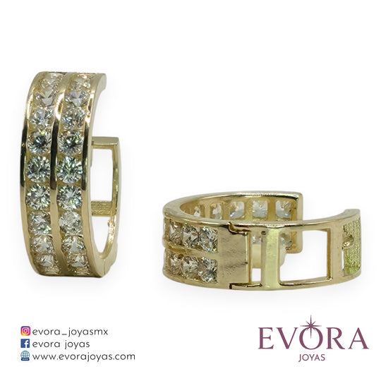 Aretes Huggies Zirconias Doble Tira de Oro 10k
