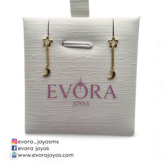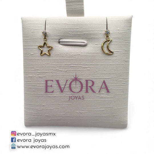 Broqueles Estrella Y Luna Colgante Con de Oro 10k