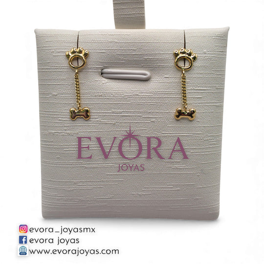 Broqueles Huella Y Hueso Colgante Con de Oro 10k