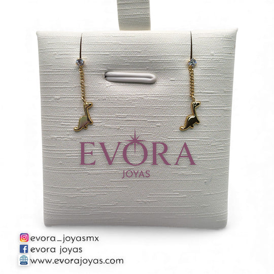 Broqueles Dino Bb Colgante Con Cadena de Oro 10k