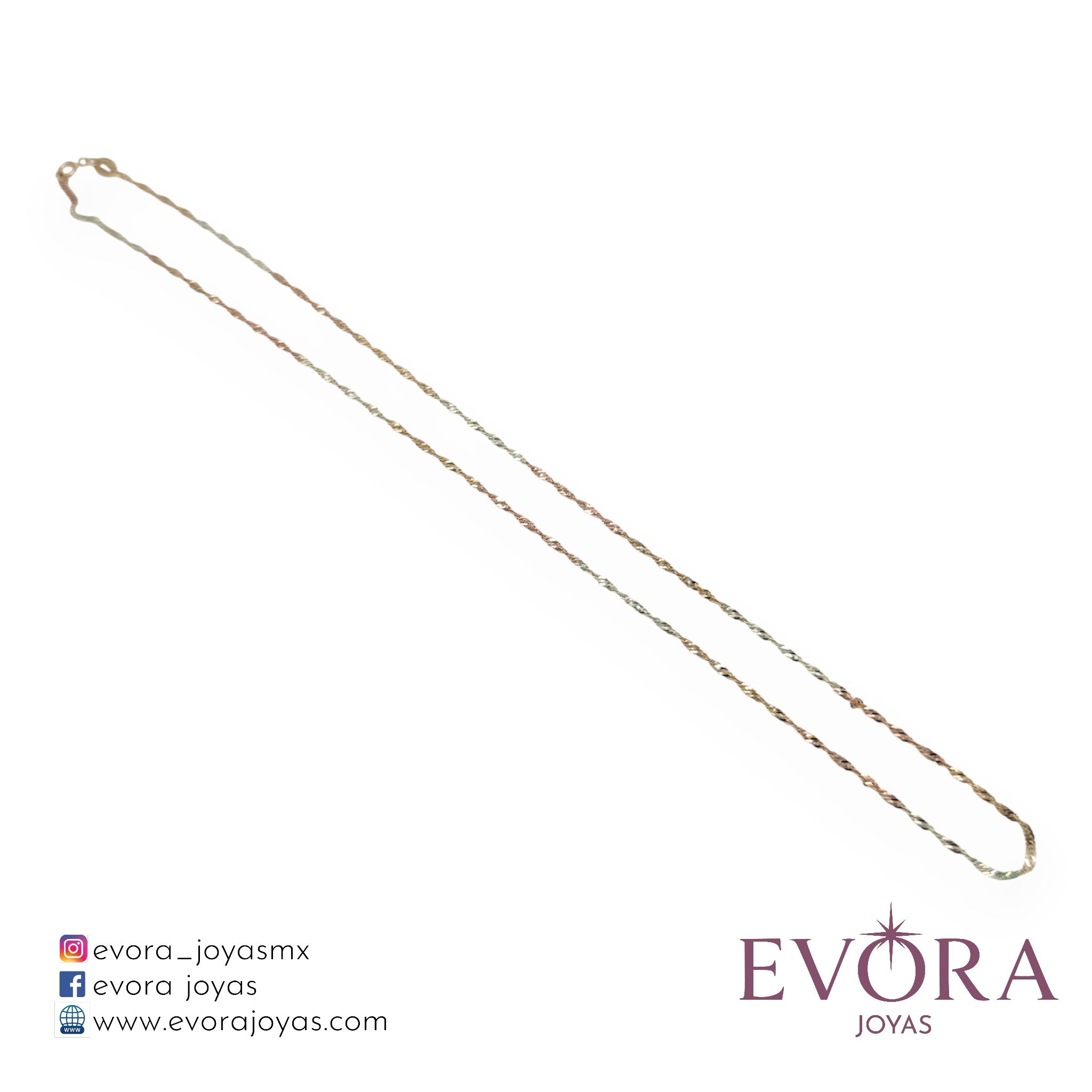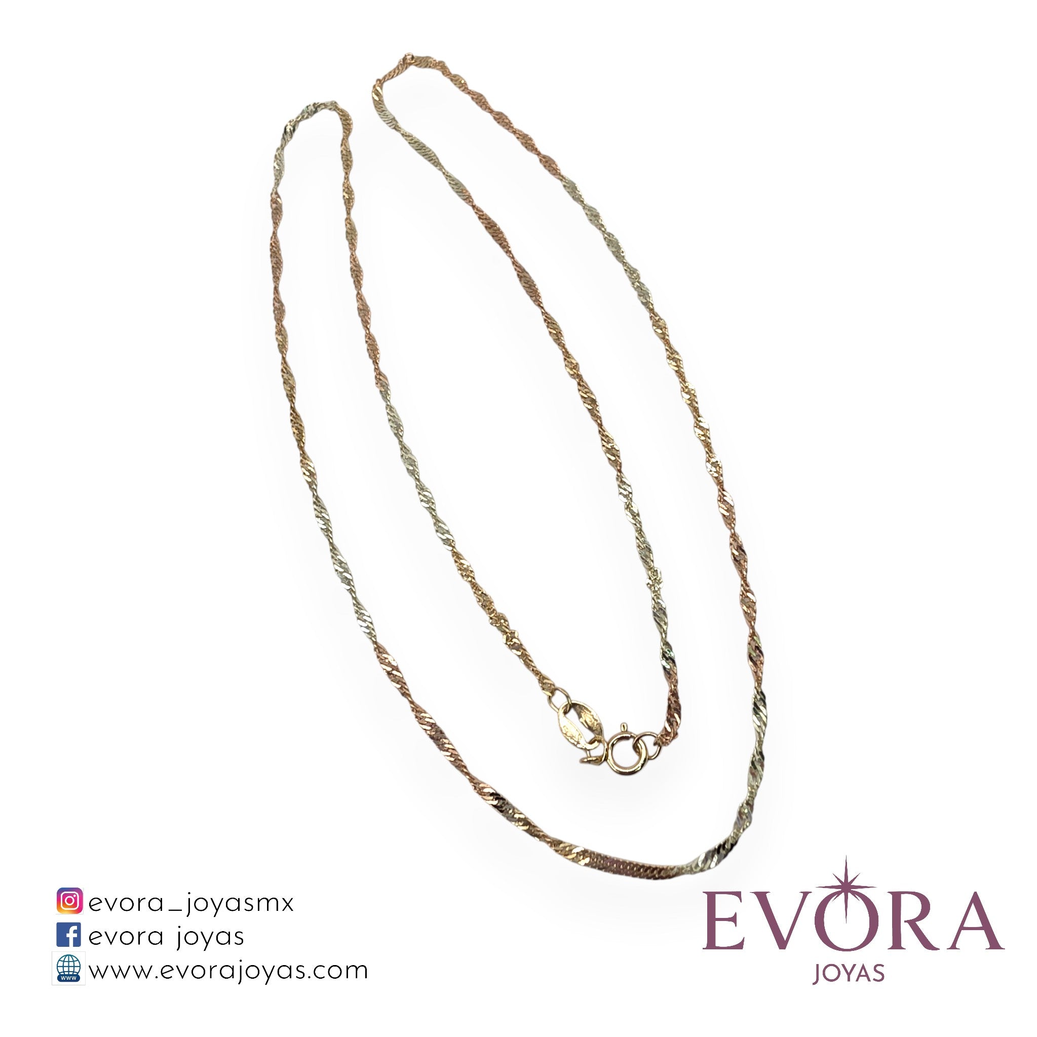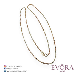 Sofisticada cadena modelo 'Singapur Florentino', fabricada en oro Mexicano de 10k. Un diseño Singapur diseñada para mujer. Tiene un largo de 45 cm.