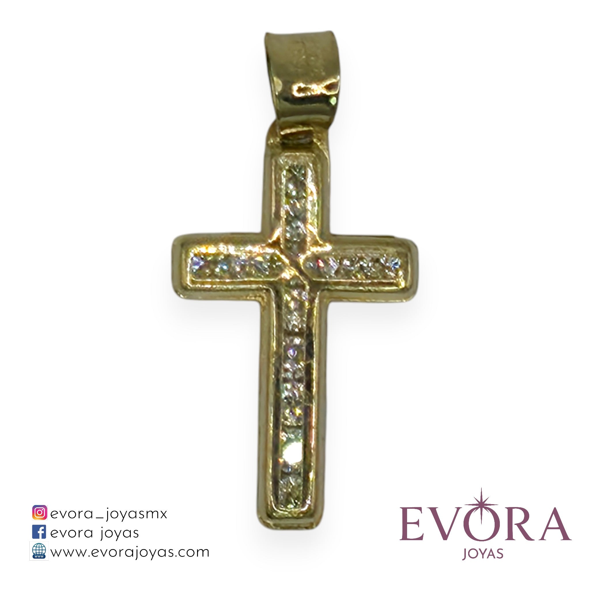 Precioso dije modelo 'Cruz Lisa Zirconias', fabricada en oro Mexicano de 10k. Un detalle Religioso. Ideal para tu cadena favorita.