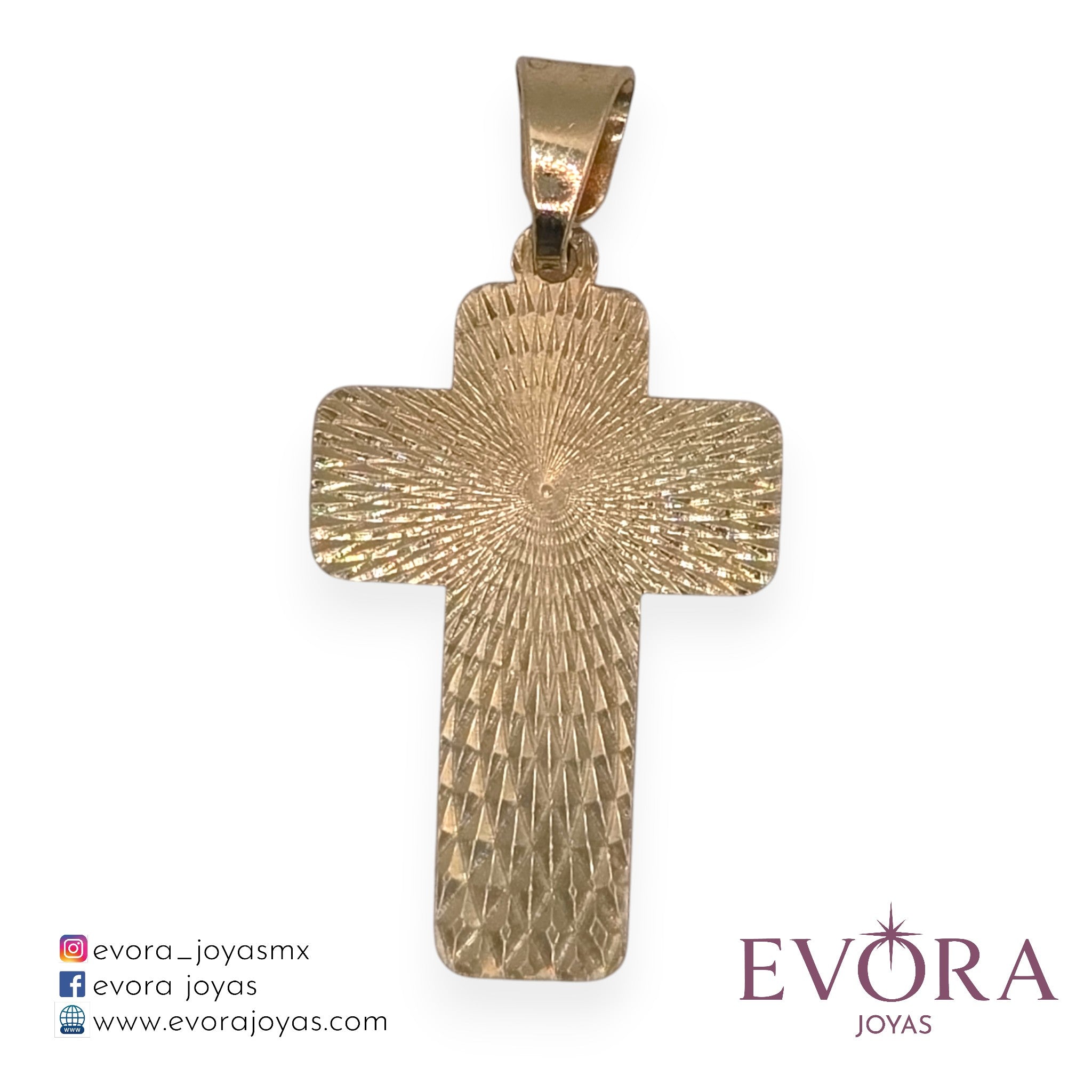 Precioso dije modelo 'Cruz Patron Tallado', fabricada en oro Mexicano de 10k. Ideal para tu cadena favorita.