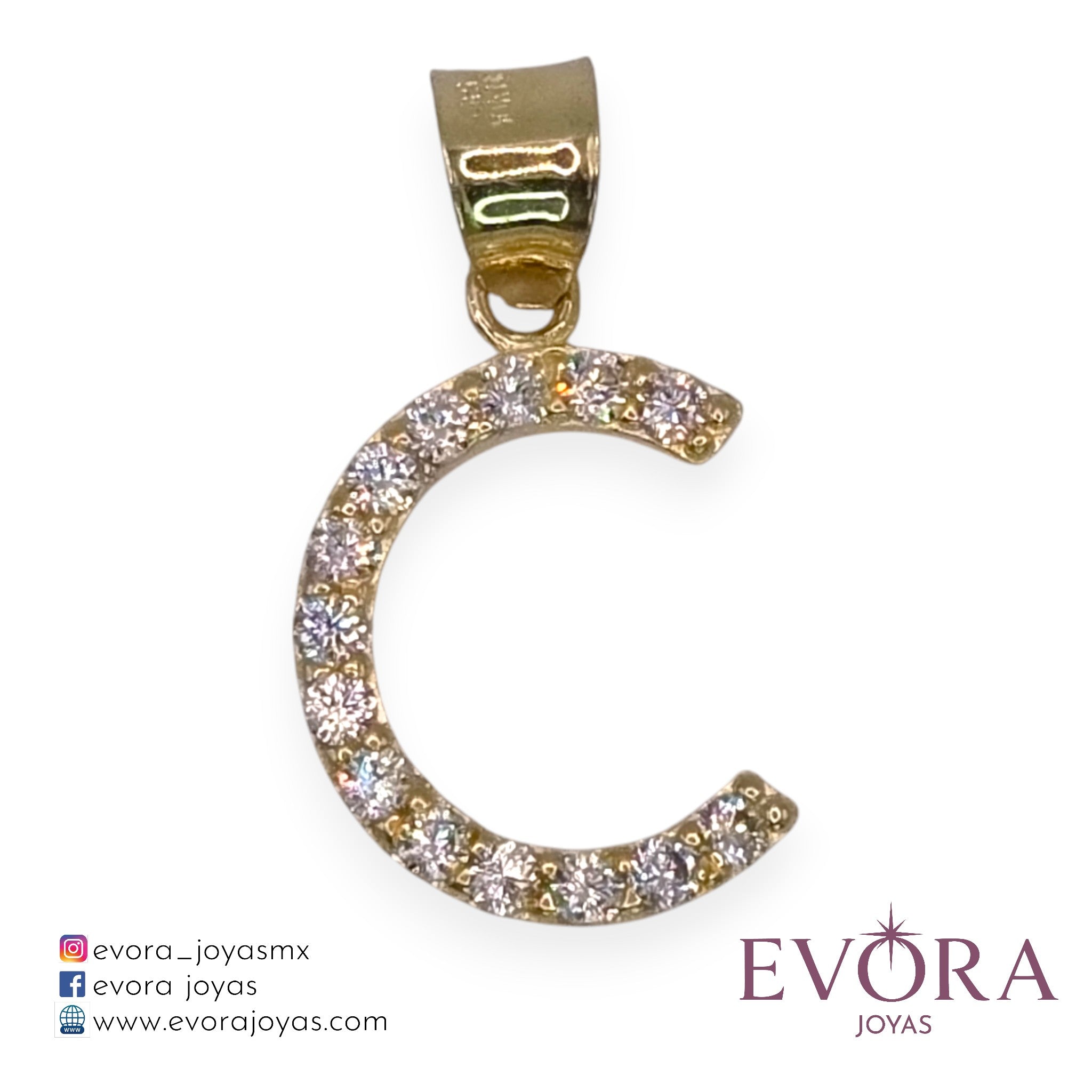 Precioso dije modelo 'Letra "C" Zirconias', fabricada en oro Mexicano de 10k. Ideal para tu cadena favorita.