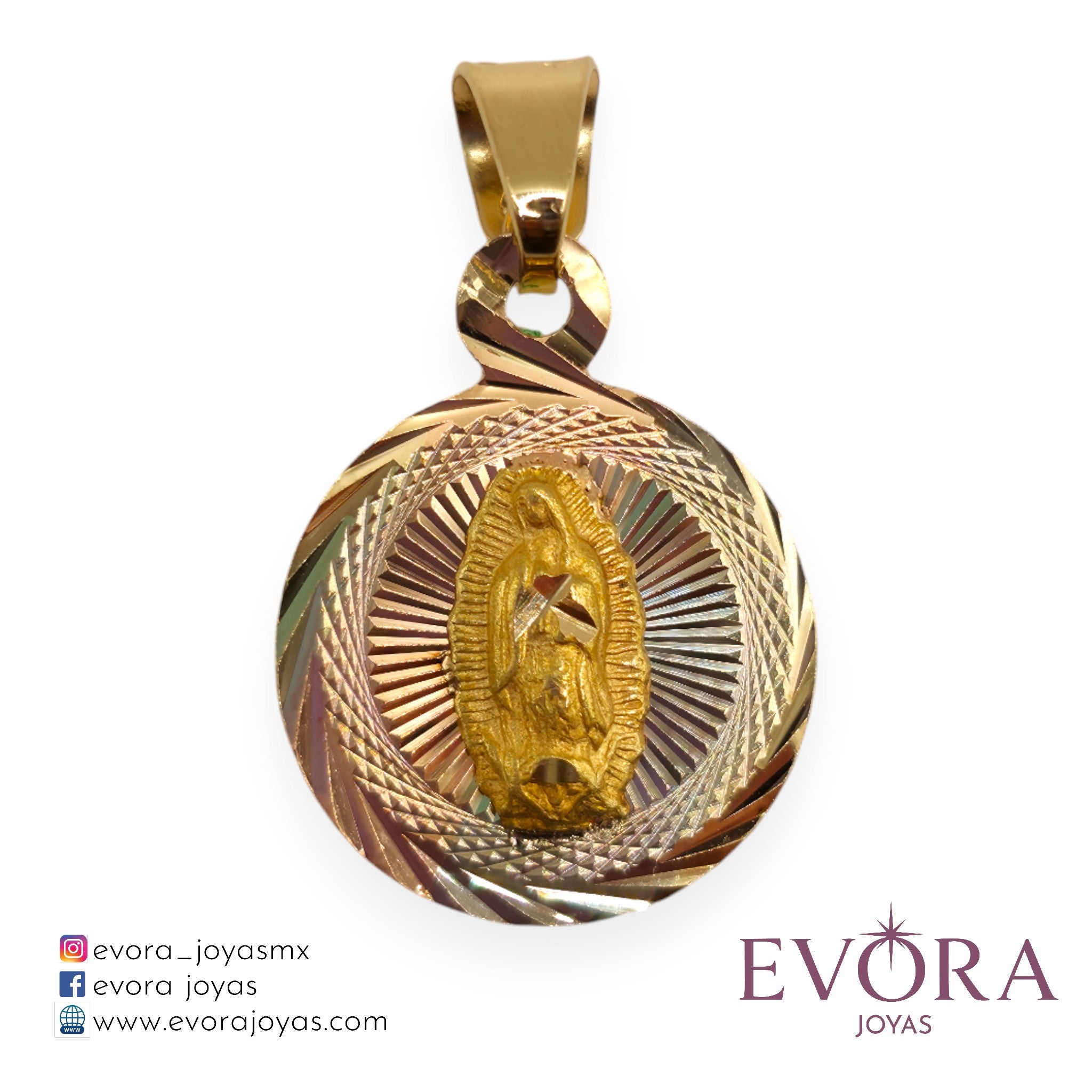 Precioso dije modelo 'Vigen Guadalupe Redonda', fabricada en oro Mexicano de 10k. Un detalle Religioso. Ideal para tu cadena favorita.