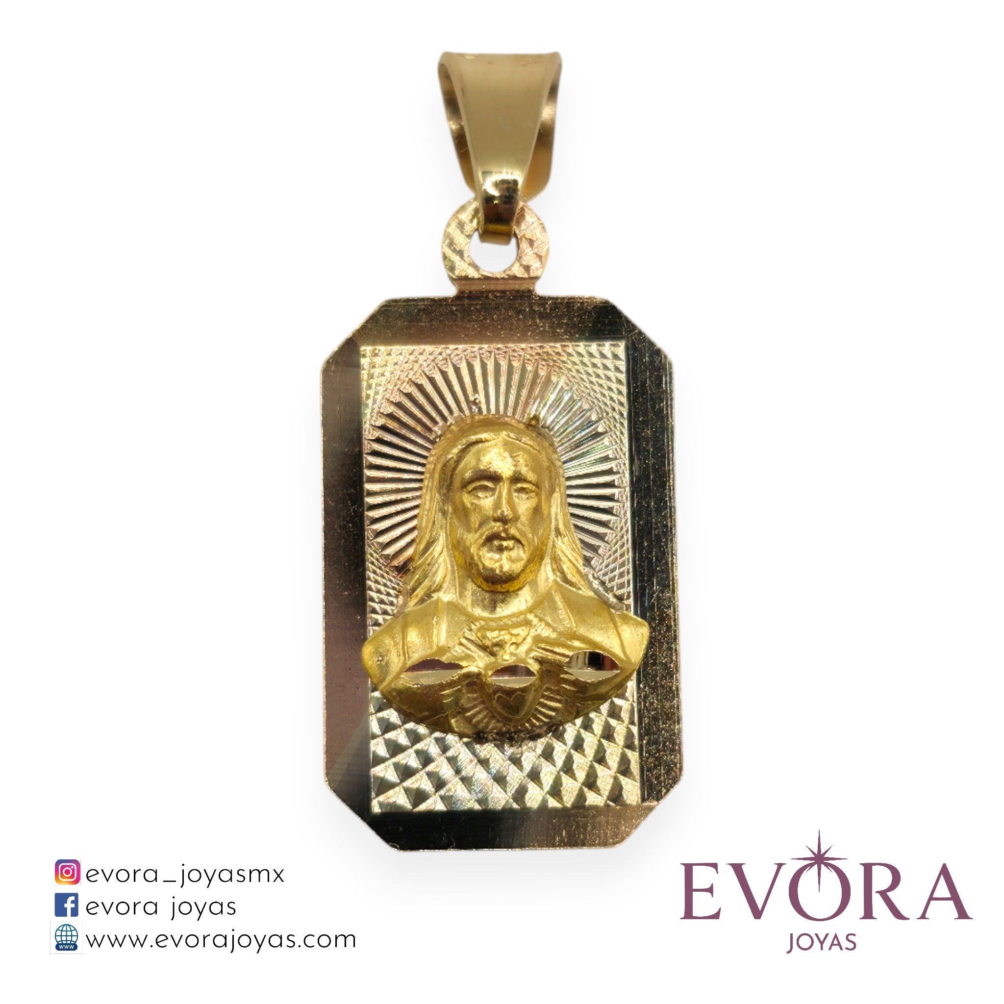 Precioso dije modelo 'Sagrado Corazon Rectangulo', fabricada en oro Mexicano de 10k. Un detalle Religioso. Ideal para tu cadena favorita.