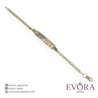 Viste tu muñeca con esta hermosa pulsera 'Figaro Esclava Estrella', fabricada en oro Mexicano de 10k. Un diseño Esclava diseñada para mujer. Tiene un largo de 12 cm.