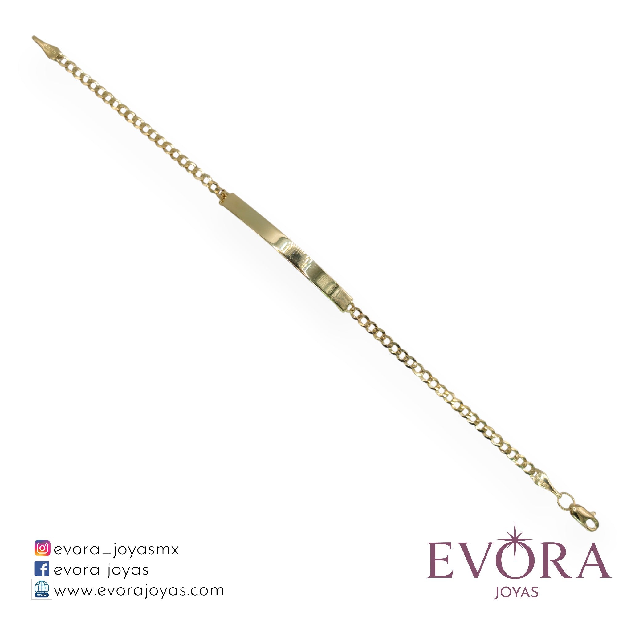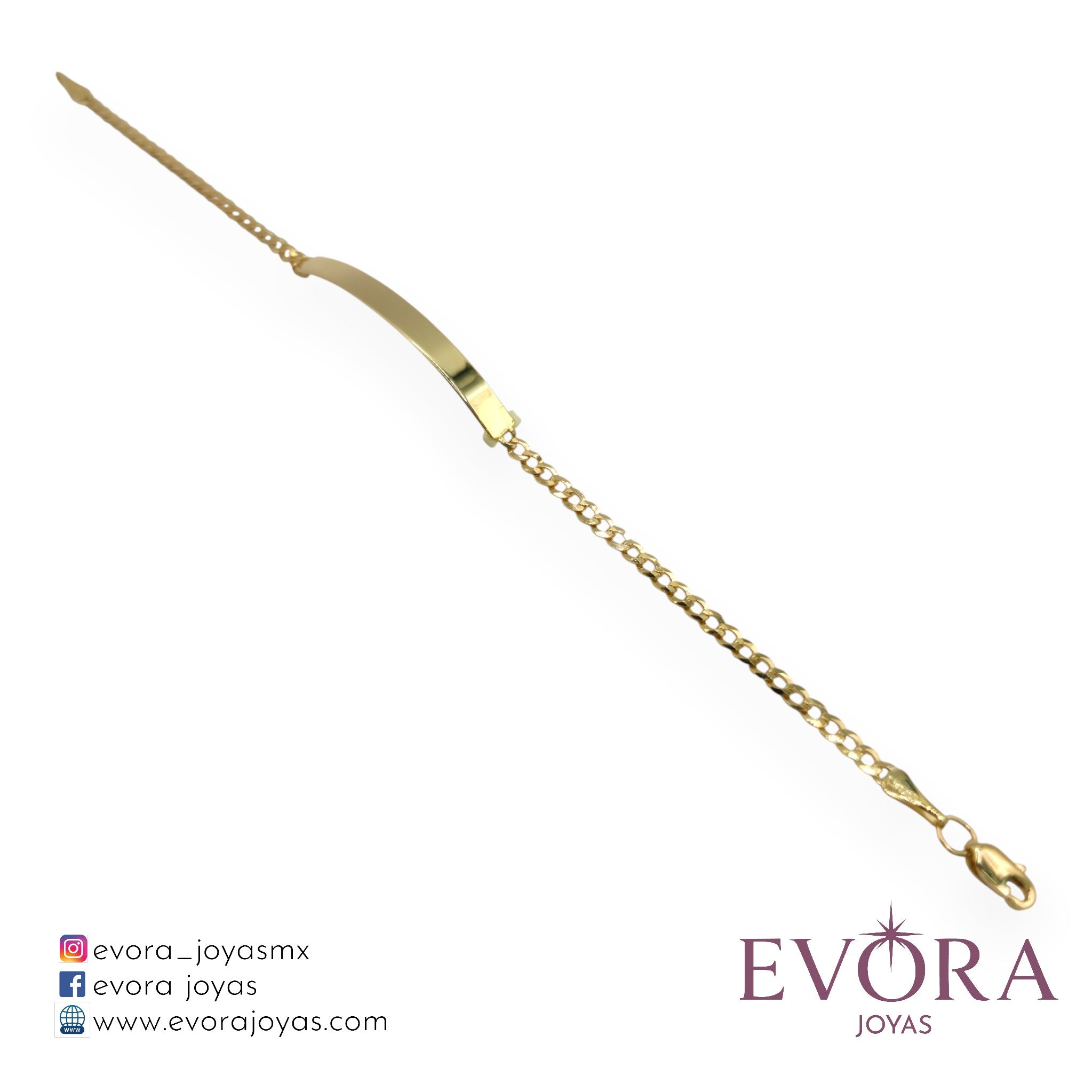 Viste tu muñeca con esta hermosa pulsera 'Eslabones', fabricada en oro Mexicano de 10k. Un diseño Esclava diseñada para mujer. Tiene un largo de 18 cm.